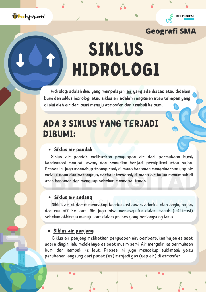 Siklus hidrologi adalah proses alami yang penting untuk menjaga keseimbangan ekosistem di bumi dan menyediakan sumber daya air yang penting bagi kehidupan manusia dan organisme hidup lainnya. Mengetahui dan memahami proses pergerakan air dalam siklus hidrologi memungkinkan kita memahami nilai air, menjaga kelestarian sumber daya air, dan memanfaatkan air secara bijak.