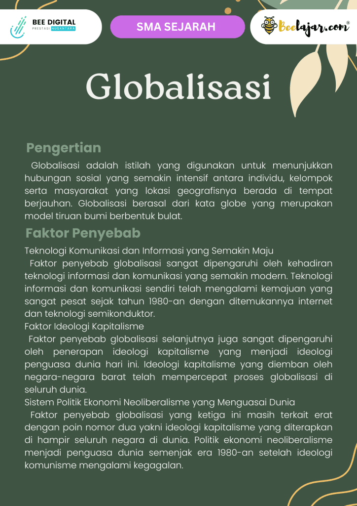Materi Sejarah SMA tentang Globalisasi mencakup pemahaman tentang proses, dampak, dan tantangan globalisasi dari perspektif sejarah. Berikut adalah poin-poin penting dalam pembahasannya: