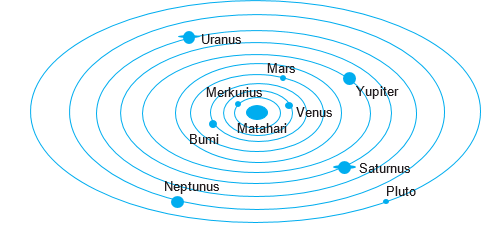 Sistem tata surya terdiri dari sebuah bintang yang disebut matahari, sembilan planet, dan benda-benda langit lainnya, seperti komet, meteorid, dan asteroid. Planet-planet mempunyai ukuran yang berlainan dan bergerak mengelilingi matahari dalam lintasannya masing-masing.