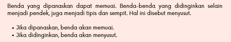 Suhu dingin ataupun panas dapat mempengaruhi perubahan pada benda.