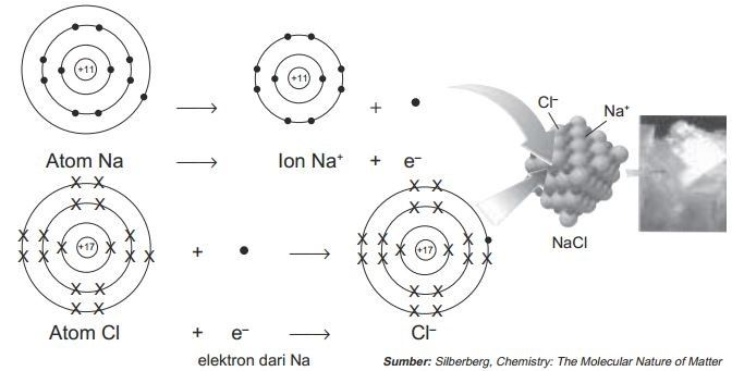 | Garam meja (NaCl) adalah contoh klasik dari ikatan ion. (b) |